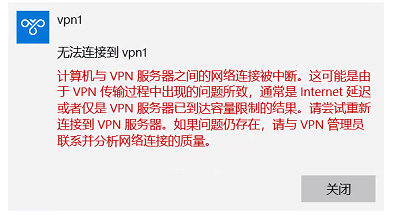 2、现象:外网客户端vpn连接提示:计算机服务于VPN服务器之间的网络连接被中断....(错误号:807),如图;