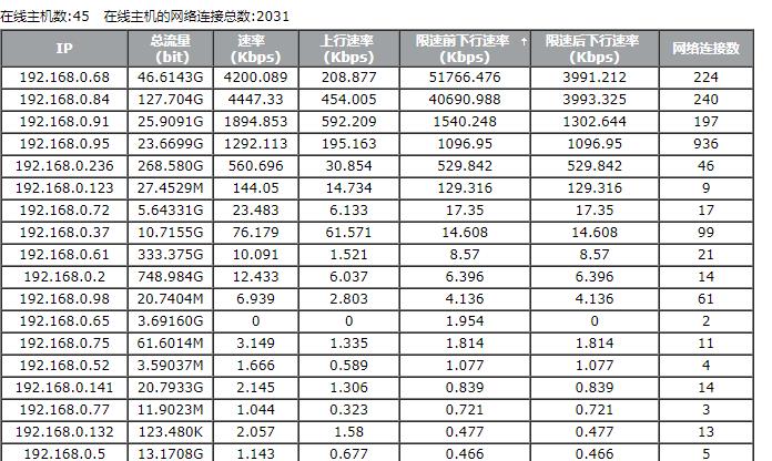 51766 不是限速前的速率吗,为何说实际占用呢? 限速后是3991说明限速是生效的。有没有单独针对这个IP限速,或者禁止上网测试一下,如果说禁用这个MAC地址后正常,有没有排查一下这台终端的是否有问题。