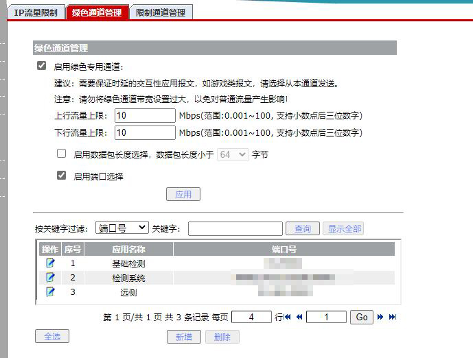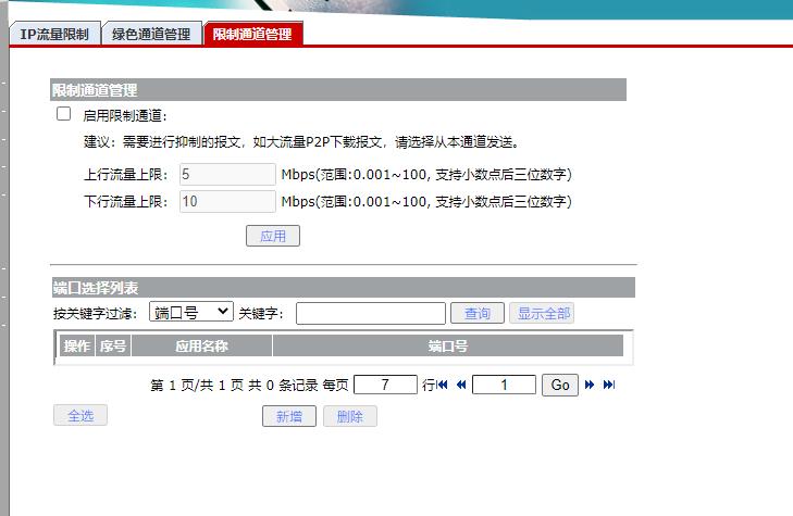 QOS设置: 每IP通道只能使用预设的带宽(独占),上行流量上限(kbps)2000,下行流量上限(kbps)4000,双向限速。