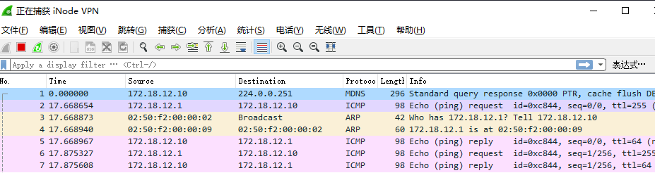 5.在终端上抓包可以抓到同网能ping通的包,但是在路由器上172.18.12.1 ping 10.10.0.53 的包抓不到