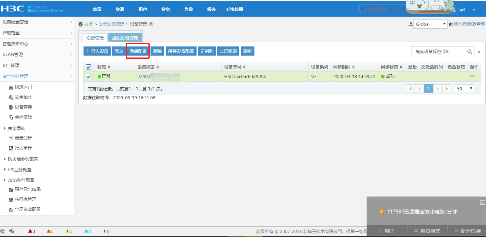 由于M9K上已经有业务在跑,SSM上的激活配置是什么作用,进行点击会不会影响业务