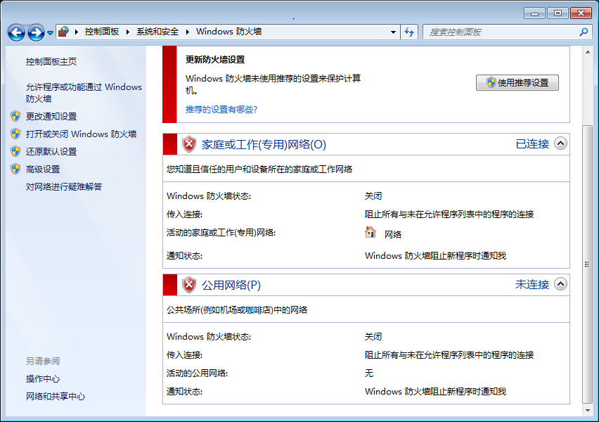 防火墙已关闭