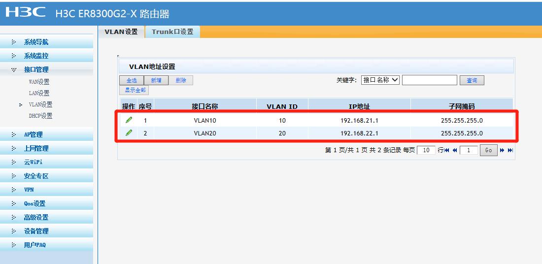 在ER上配置了相应的VLAN10、VLAN20、DHCP、AP模板等设置。