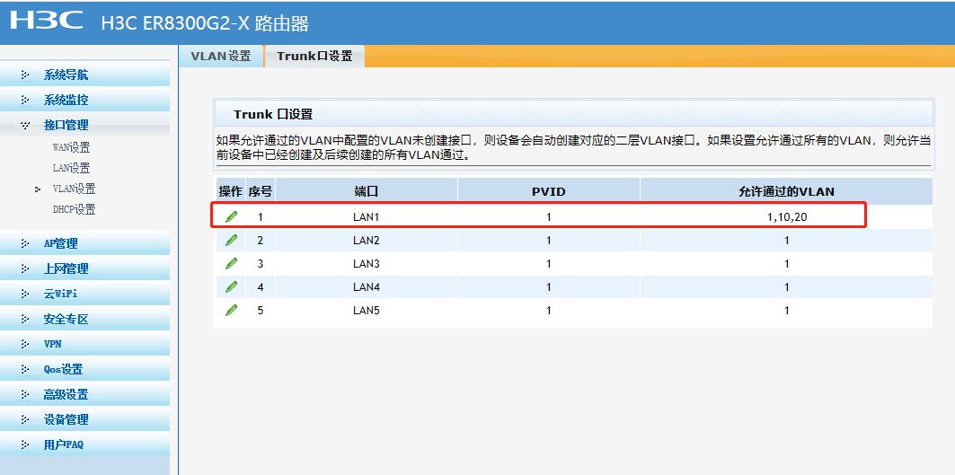 配置Trunk口设置: