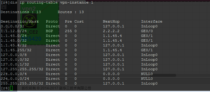 r2_pe1和r4_pe2 均能看到对端bgp路由条目