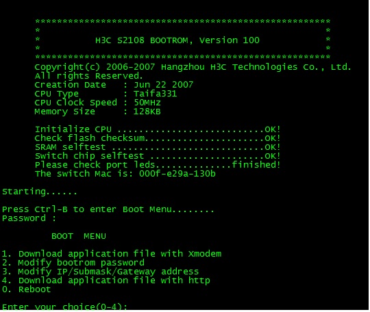 我这里有好几台H3C S2108,用了挺久了,不过都还没坏,正常使用。现在网络结构改变了,想重新配置,没有sys模式的密码,想恢复为出厂设置重新配置一下,用户手册上让在sys模式下输入restore default,目前进不去sys模式。
