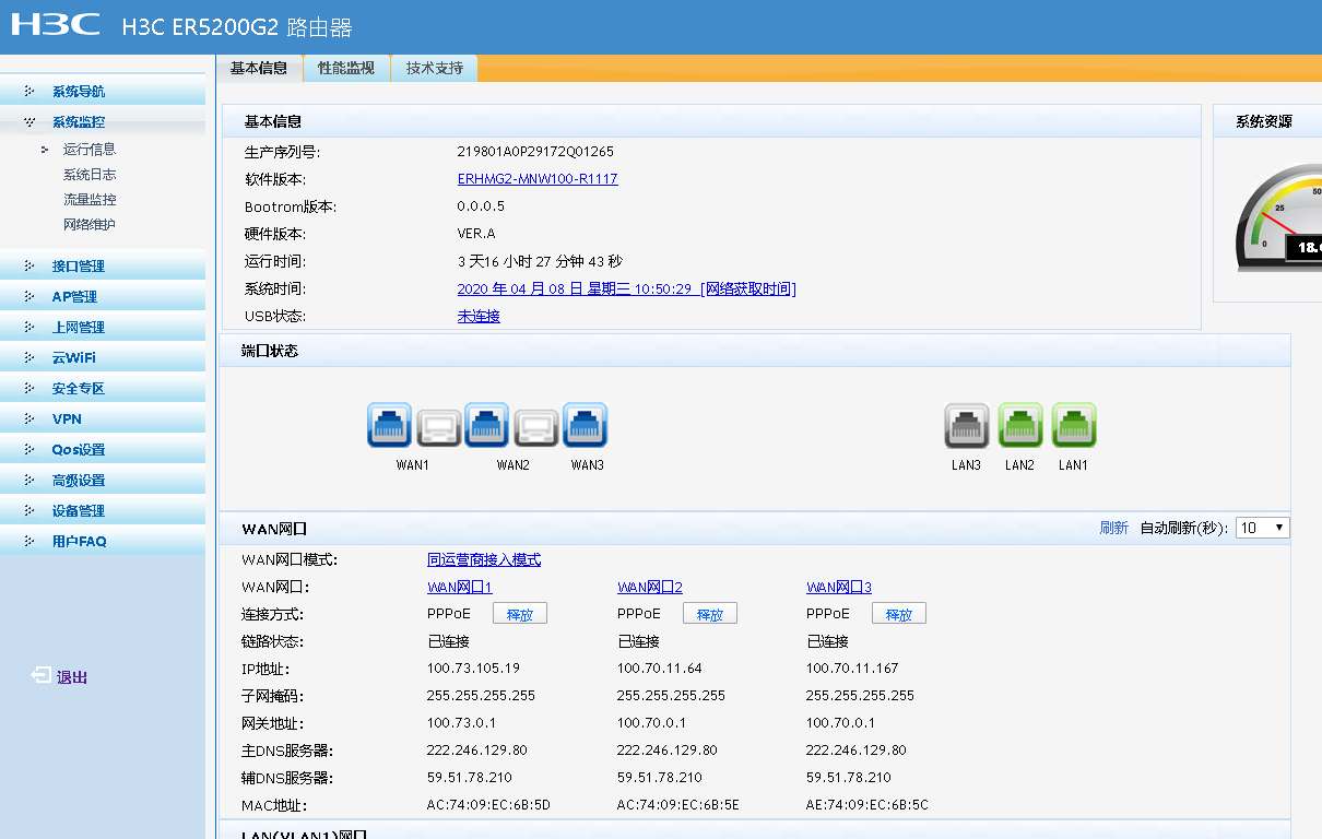 不对呀,我另一台路由支持三WAN口的