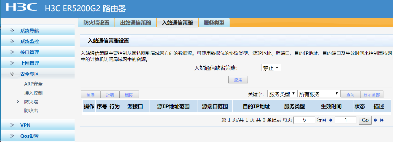 想问下这个路由器的防火墙功能为什么生效不了,想在这个路由器上做入站访问策略。但实现不了,开启防火墙后,没有任何效果。