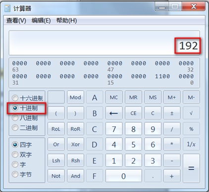 #点击“十六进制”,计算器直接将192切换为十六进制,数值为C0