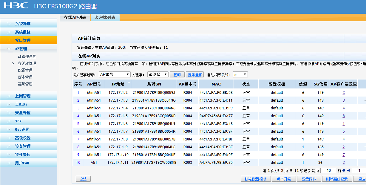 4、是否AP的管理地址和内网其他网段地址存在冲突,建议将AP管理地址和内网其他网段地址分离。