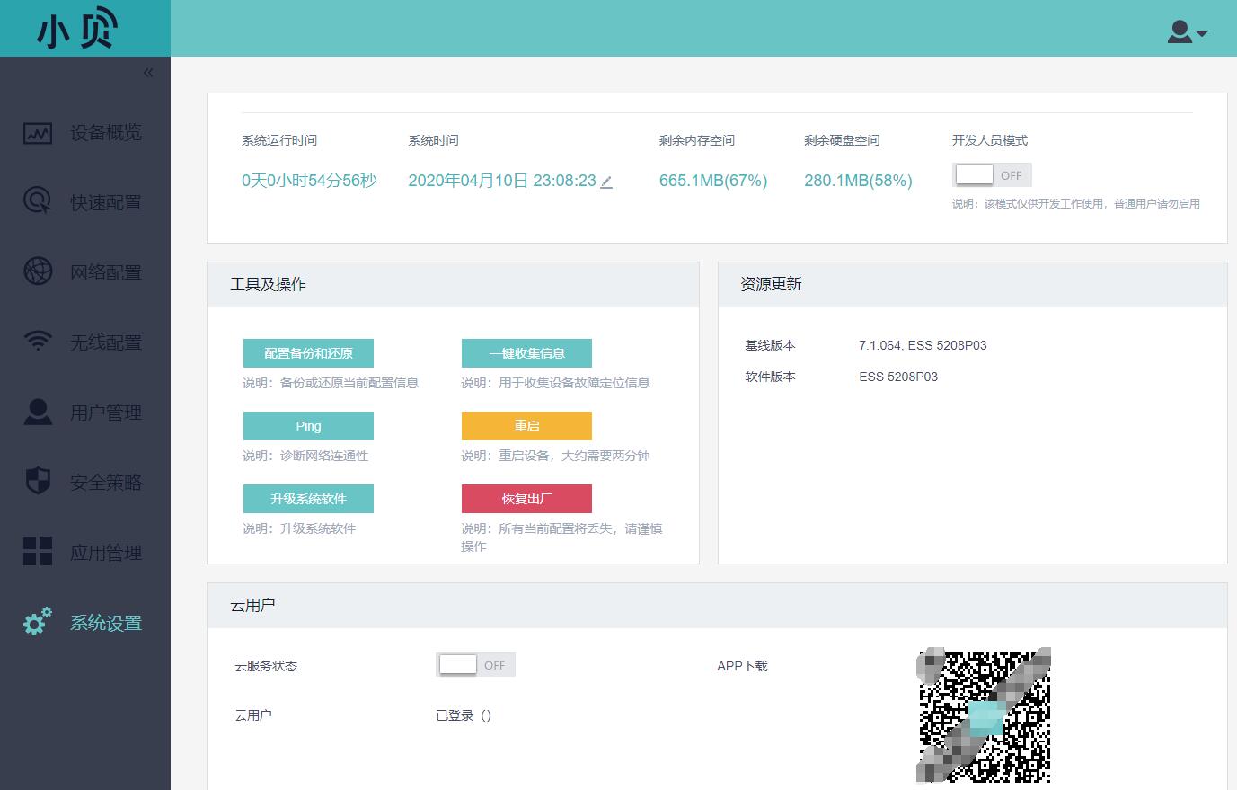 设备点击上传固件后,提示空间不足,无法升级固件.