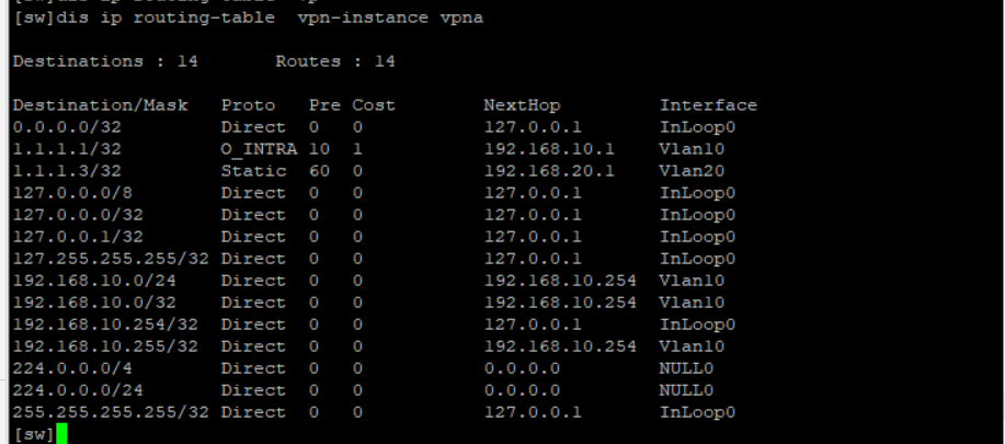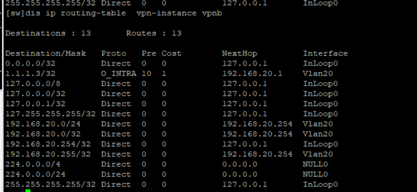 ip route-static vpn-instance vpna 1.1.1.3 32 vpn-instance vpnb 192.168.20.1  这是静态添加的格式