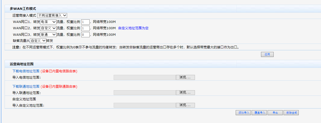 GR2200双WAN状态,WAN1电信线路,内置路由表,WAN2移动线路,多WAN设置中,自定义地址无法导入路由表,已经是**.cfg的格式了,按了添加导入,自定义地址范围还是提示为空的!