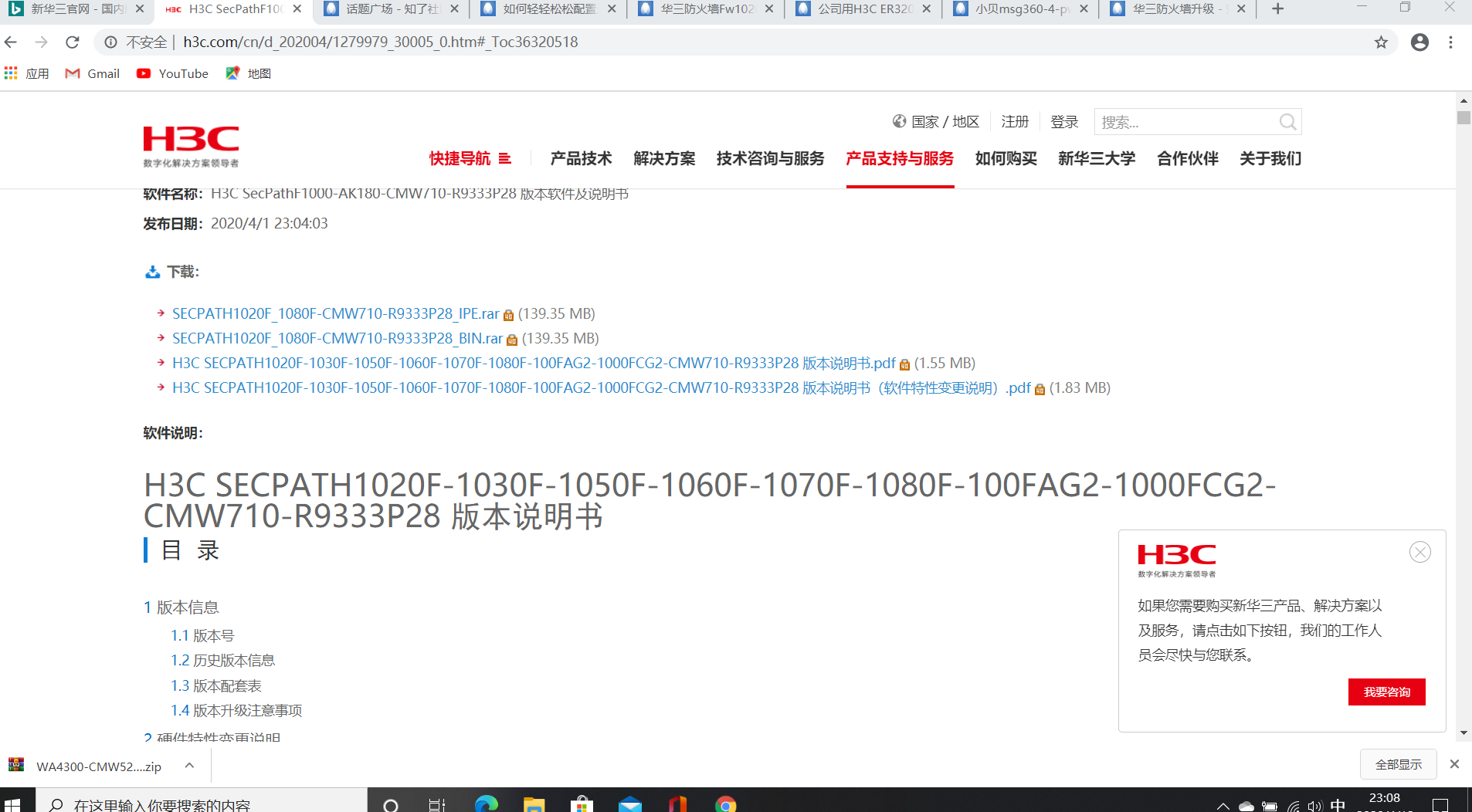 H3C SecPath F1020防火墙升级应该对应那个型号和版本