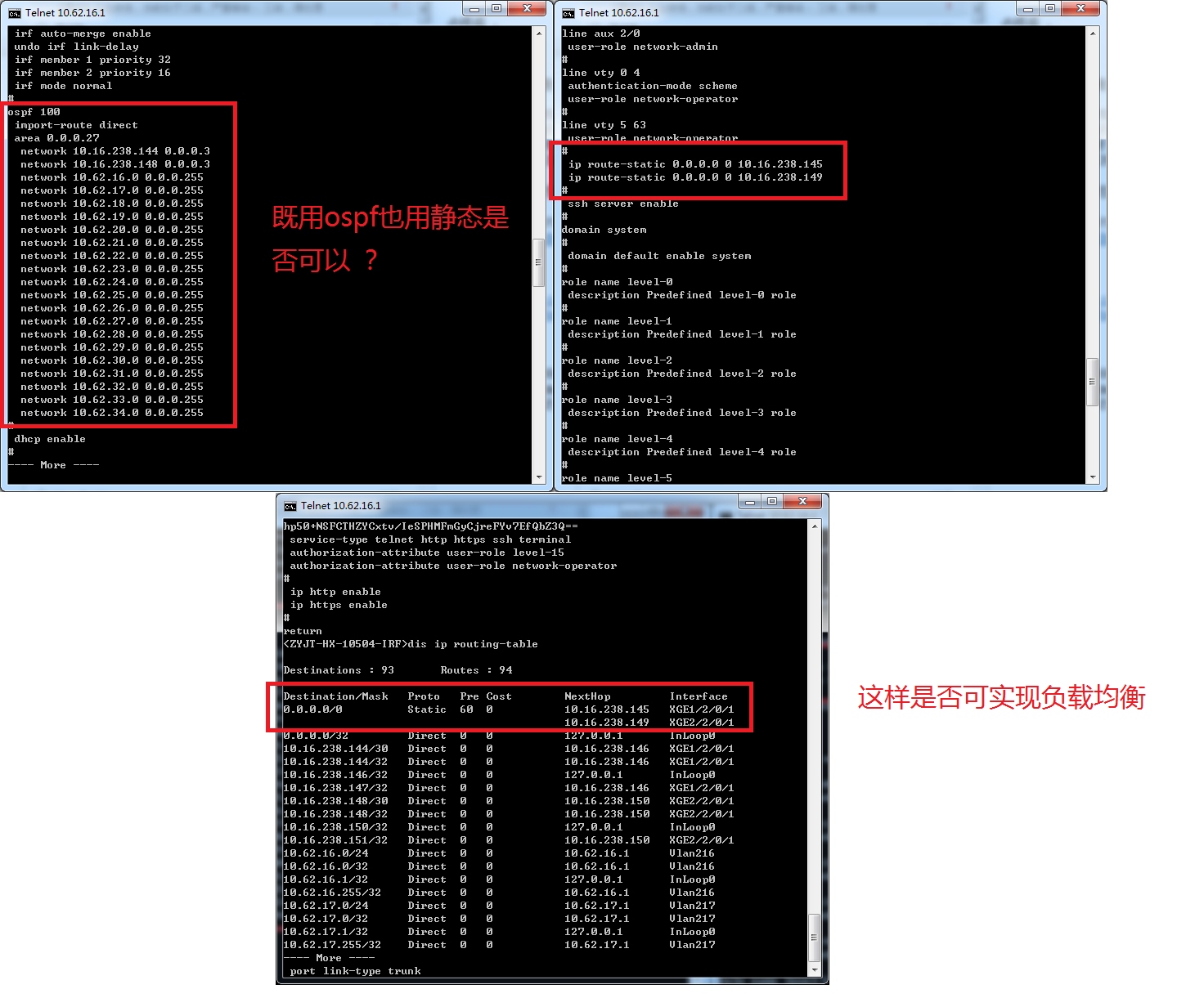 如图所示,1.既用ospf也用静态是否可以? 2.这样是否可实现负载均衡