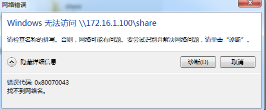 在cas主机中安装了samba软件,并且按照指导手册操作的,但在使用windows访问cas主机时,能看到共享的share文件夹,但在输入账号后,提升无法访问此文件夹,见下图