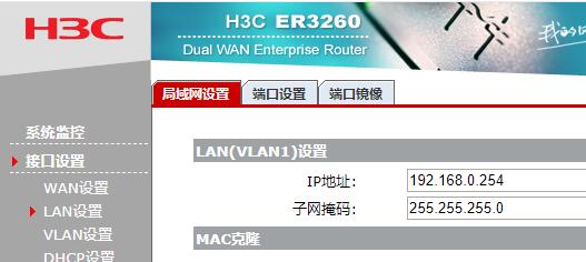 LAN设置192.168.0.254/24