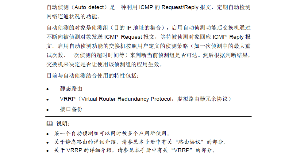我以前用的s5600有一个自动侦测功能,只需开启detect-group后,并设置下一条地址侦测, 应用到vlan上后。就能实现当这个vlan或者是交换机不可达下一跳交换机的时候,自动切换另一个交换机或vlan。现在新的交换机上面,用什么功能代替了这个?路由协议?