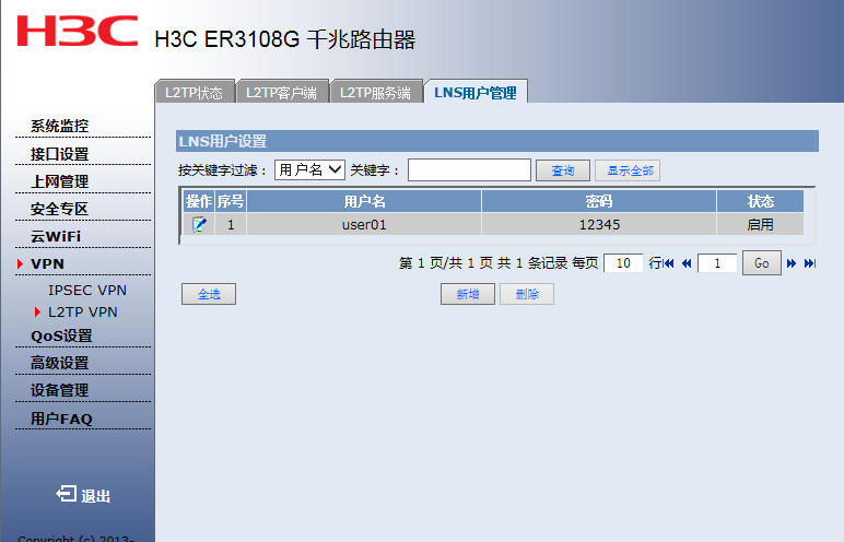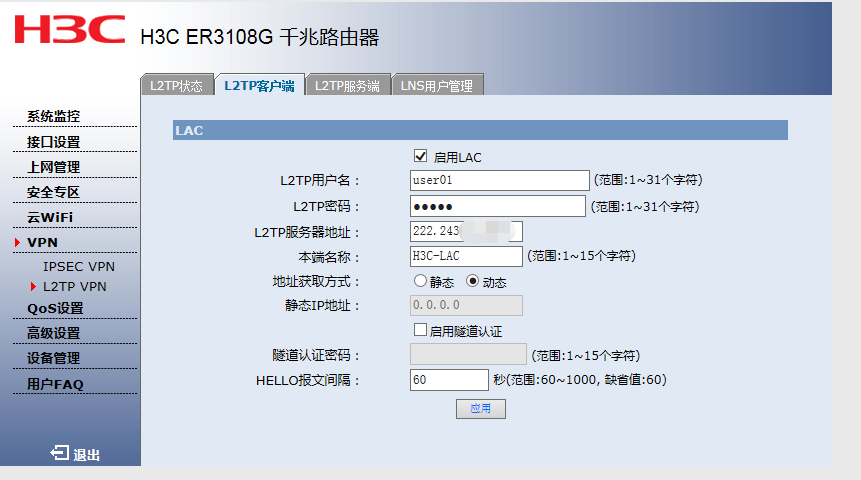 因工作需要,另一座城市 B 的同事 ,需要通过VPN连接到公司总部 A,自已公司用的的是 H3C ER3108G的路由器,想利用路由器自带的L2TP VPN功能来实现 :B城市通过 VPN 与 A城市相连。