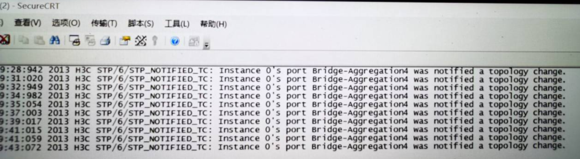 这是stp提示的端口状态改变,你看看聚合口的状态,所有成员端口是不是都是选中状态,如果不是,可能出环了,检查下聚合口两边的端口配置、端口速率是都都一样,如果聚合成员端口的状态都是select选中状态,那个提示出现一次就不在出现了,可以不用管它 ,