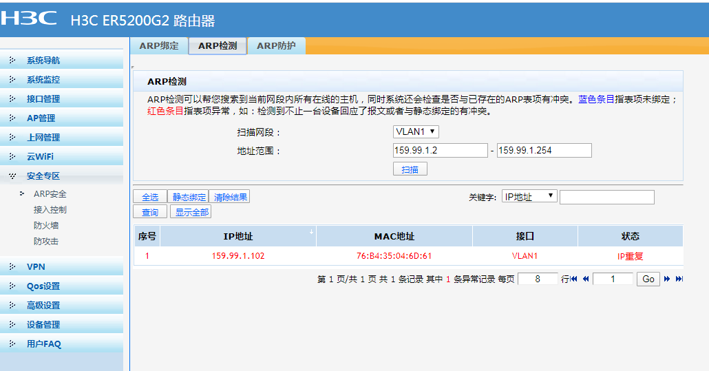 ER5200G2怎样让IP冲突的电脑重新联网,ARP检测到IP重复,电脑断网了有感叹号,怎样让这台电脑重新联网