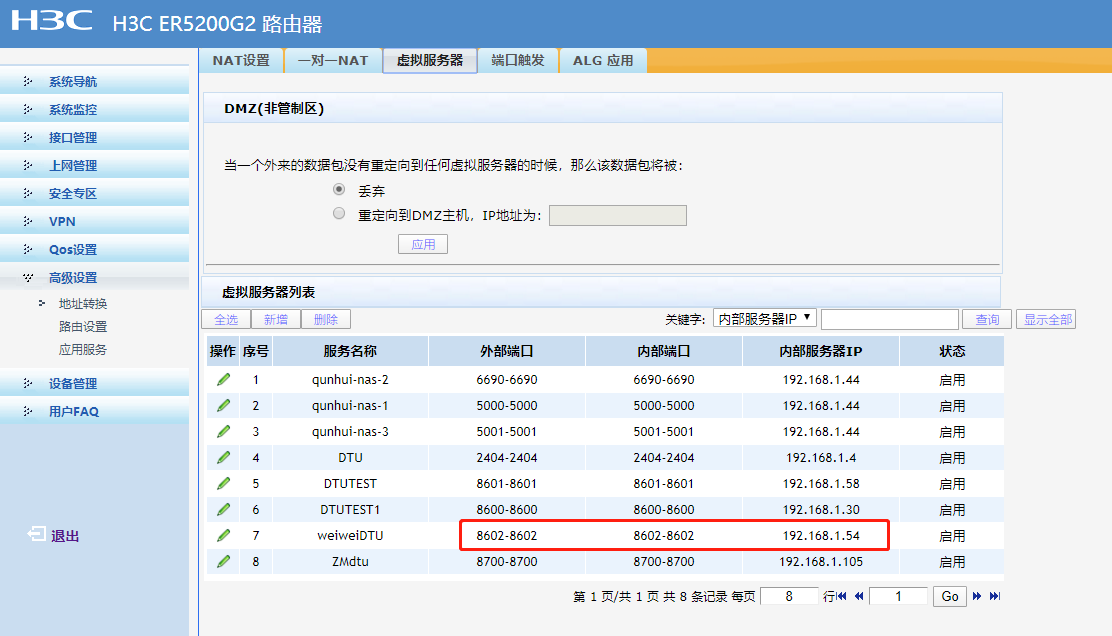 上图中,虚拟服务器中的端口转发开了。您说的端口触发不知道是不是这个?如果不是,您方便告知是在哪里开吗?