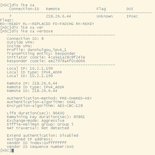 看sa的状态unknown,这种一般是斜巷参数不一致导致的,检查下两边的参数是否一致,预共享密钥也次改为一致,然后debug ike all看看