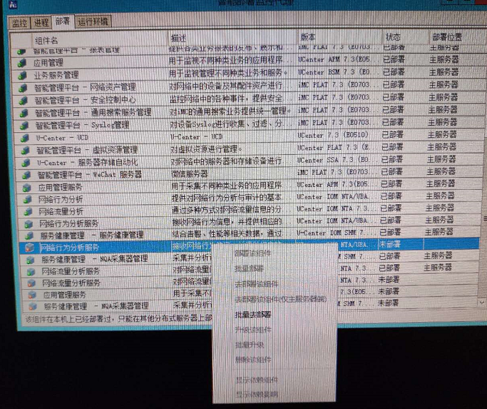 如图,U-CENTER中未部署的组件右击菜单中没有“部署该组件”和“批量部署”,怎么部署该组件 ?