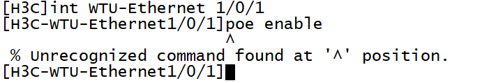终结者 wt1024 如何在端口下开启poe功能呀?我在GigabitEthernet和WTU-Ethernet1端口下敲 poe enable 提示