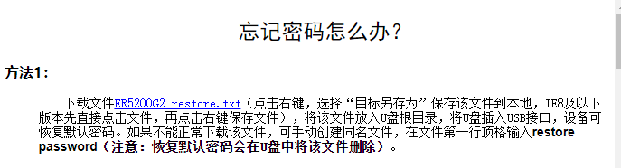 华三(H3C)MER5200密码忘记了,现在想按提示用U盘下载ER5200G2_restore.txt文件来重置密码。