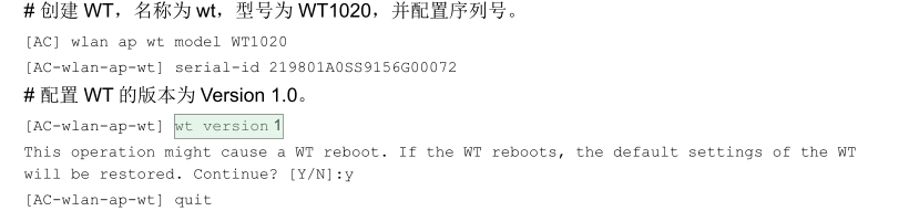 用WX3508H无线控制器根据上图的命令敲 wt version 1报了错,如下图