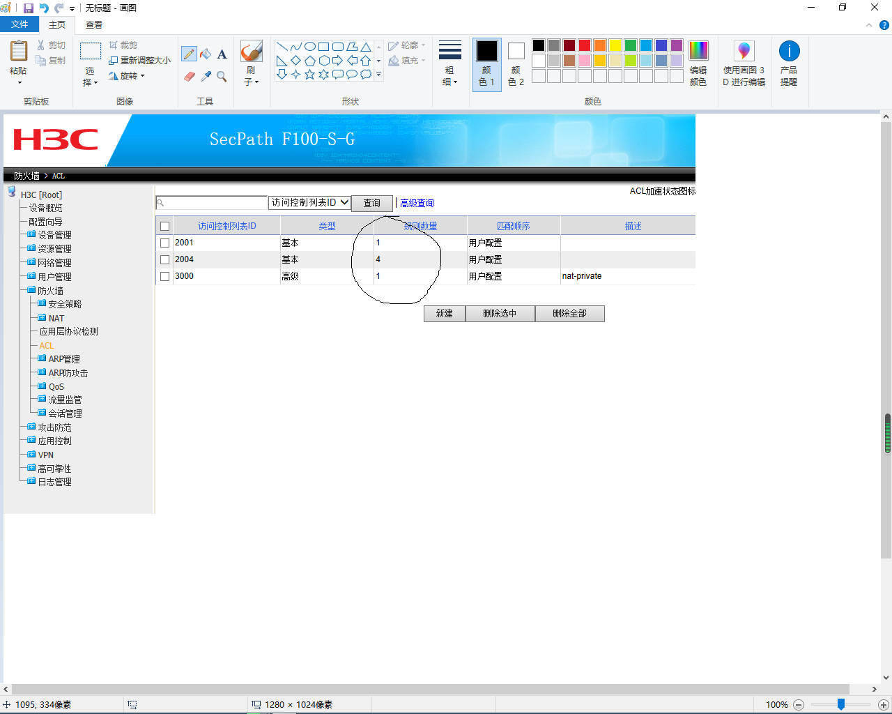 可登陆到命令行使用dis acl all命令进行查看。
