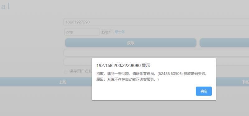 EIA 短信认证,提示62488.60505获取密码失效 原因系统不存在自动转正访客服务