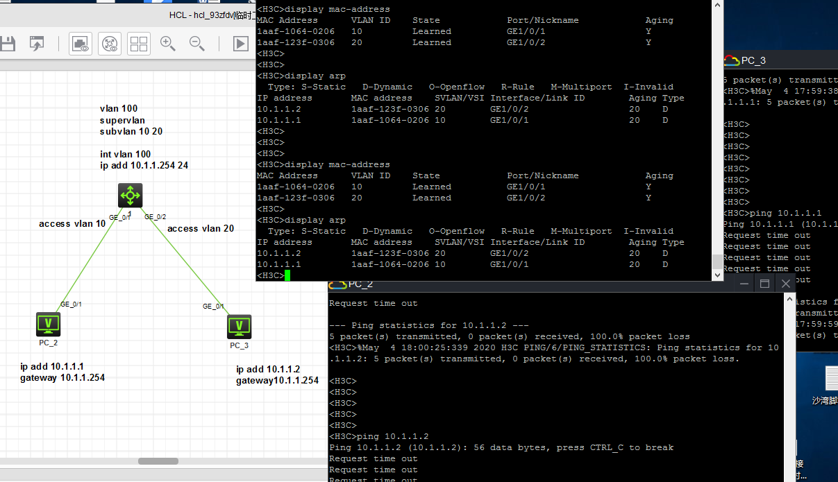 super vlan 接口下启用本地arp代理,sub vlan 间才能通
