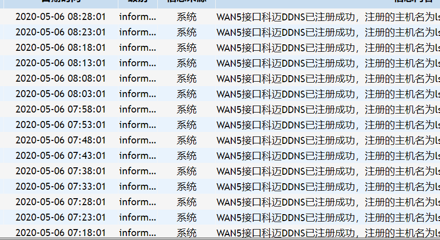 ER8300G2-X路由器,使用***.***  DDNS服务,路由器会每5分钟发送一次注册,因为接口是通过PPPOE拨号的,没有必要每5分钟就发送一次注册申请,只需在拨号成功后发送一次注册即可。