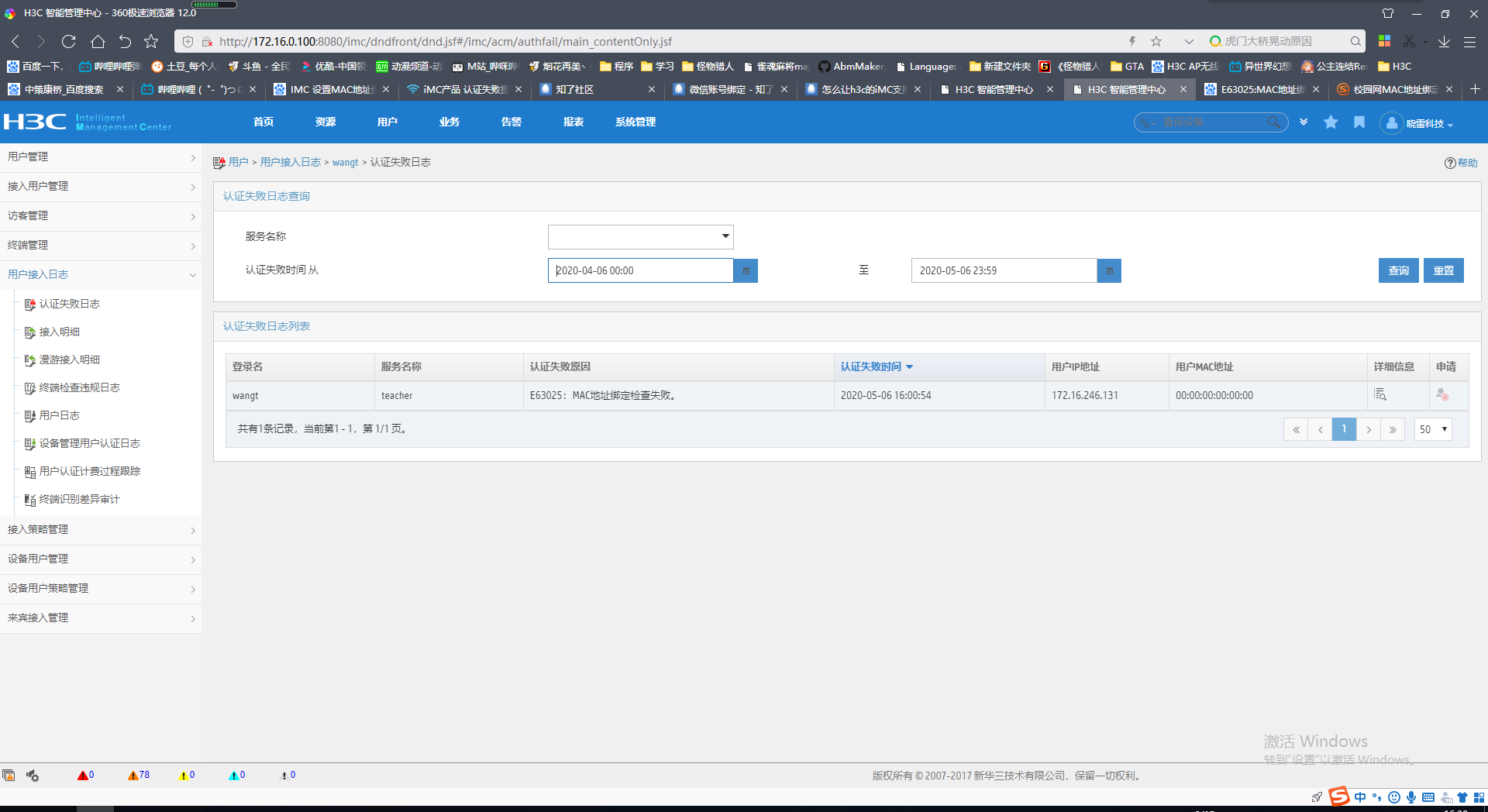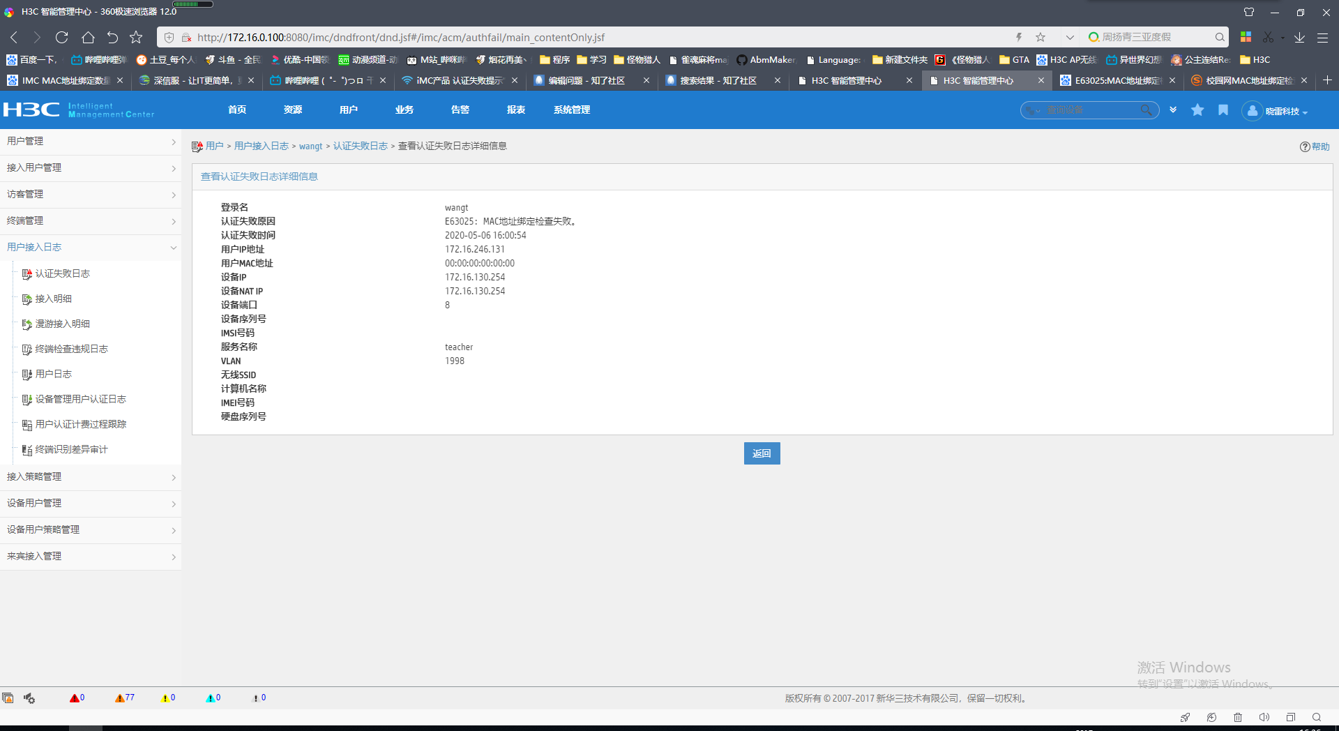 认证失败的mac地址信息是靠接入设备上传的,130.254和接入终端是什么关系,是否跨三层了?跨三层接入设备是学习不到MAC地址的,就会上传全0.具体得设备确认下。