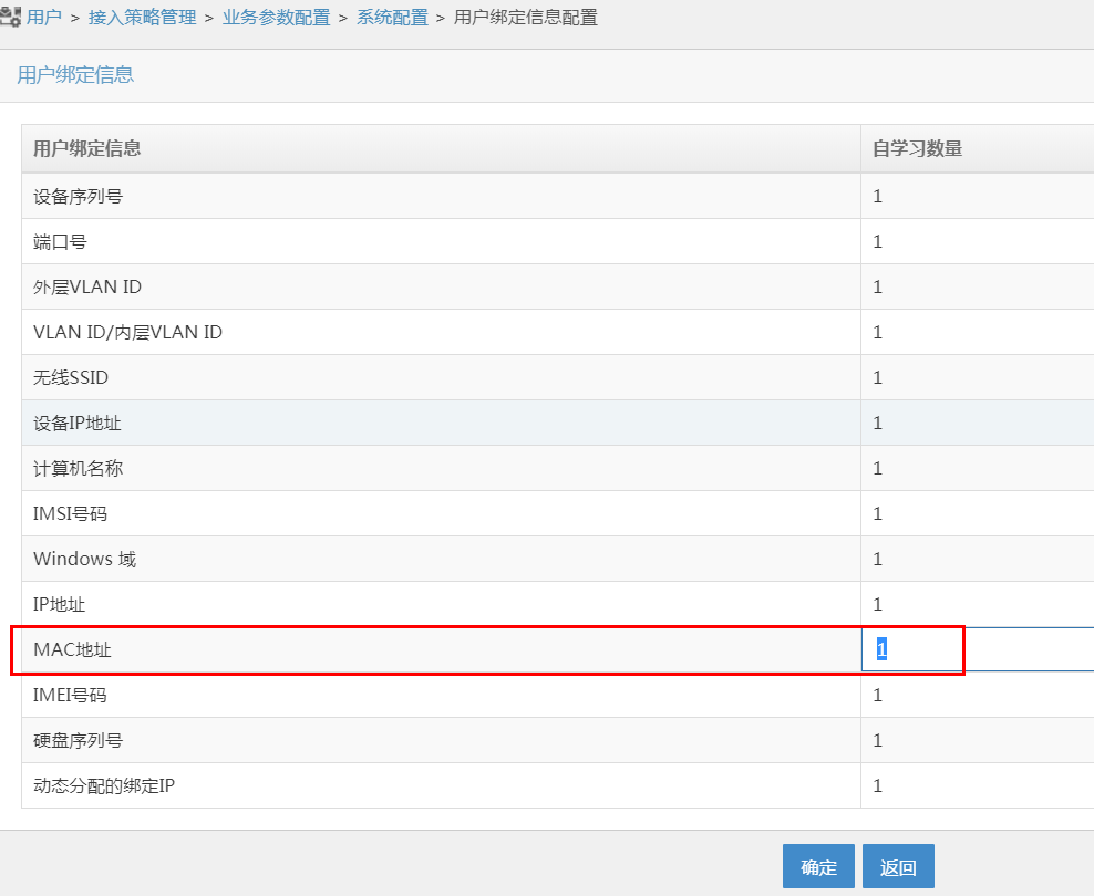 iMC侧支持自学习也可以手工绑定,自学习的数量可以在这里调整