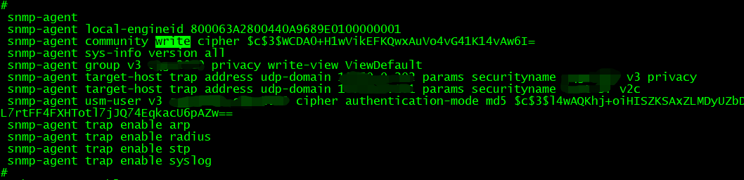 [Agent] snmp-agent group v3 managev3group privacy read-view test write-view test