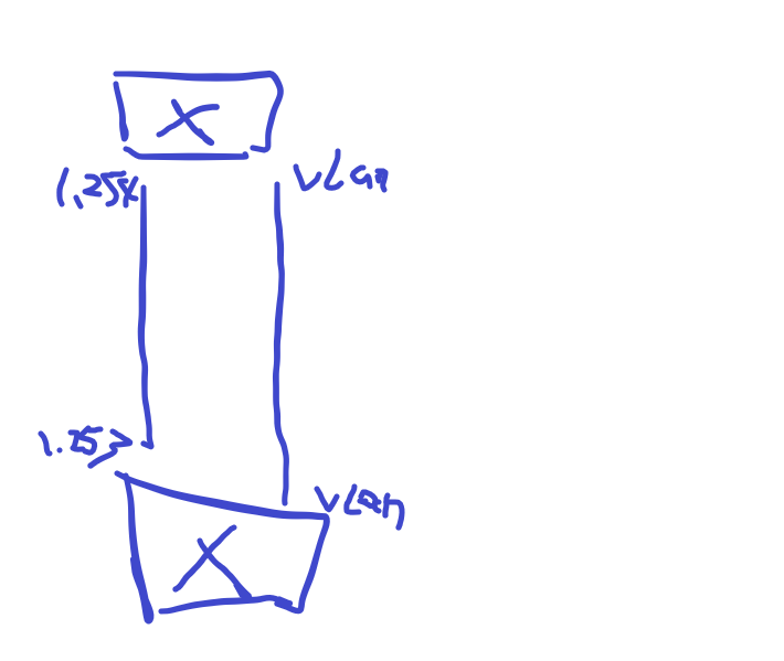 如下图,想要两台设备互联,现在已经是通过三层连接防火墙和核心交换,因为有很多的vlan并入,又想让vlan流量走入防火墙,但vlan都需要先接到核心上面,所以有了如下图所想,问题是,这种架构,会有问题吗?
