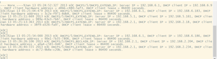 · 该日志抑制周期结束后:如果设备后续仍连续生成该日志,系统输出被抑制的日志信息以及被抑制的数量,并启动下一个日志抑制周期。日志信息的第一个抑制周期为30秒,第二个抑制周期为2分钟,以后的抑制周期都是10分钟。