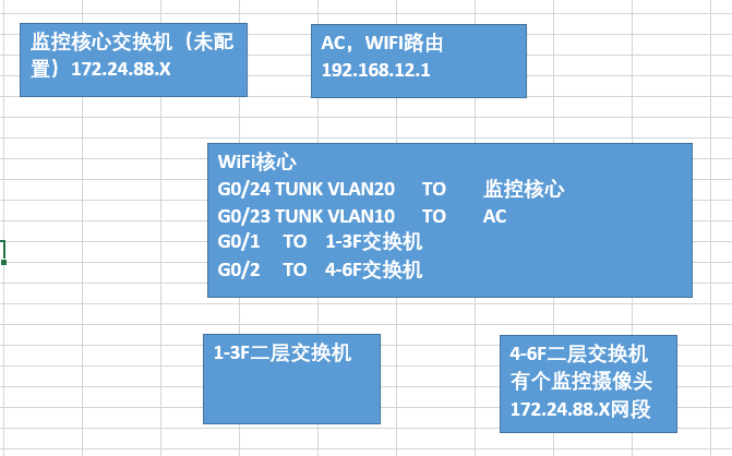 WIFI核心下联两个傻瓜交换机,有一个交换机上有两个IP段