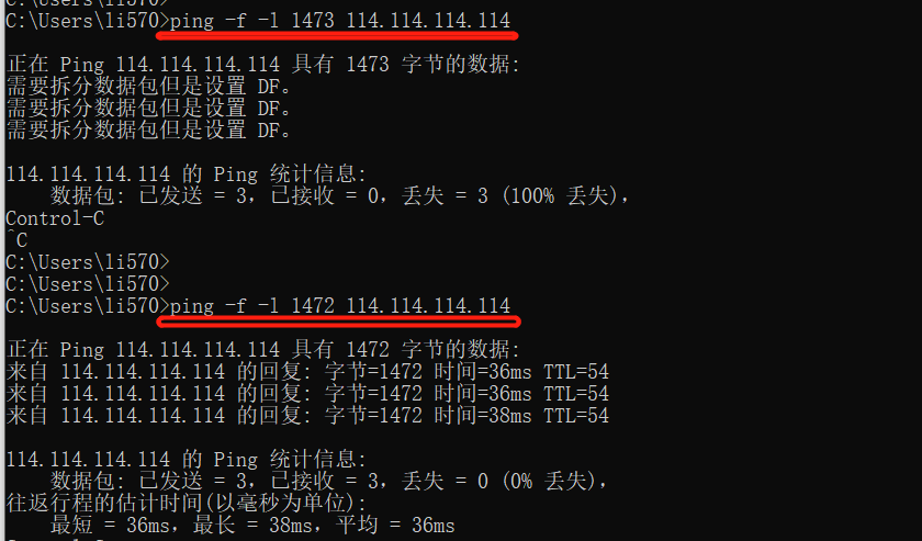 内网电脑ping带包大小ping公网,这样测MTU是准的吗,还是必须要电脑直连拨号才行。