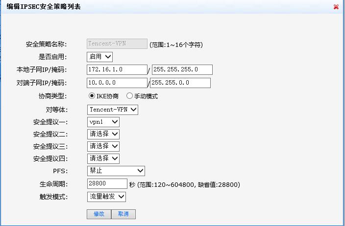 ER3260G2 路由器IPSEC VPN无法联通腾讯云VPN