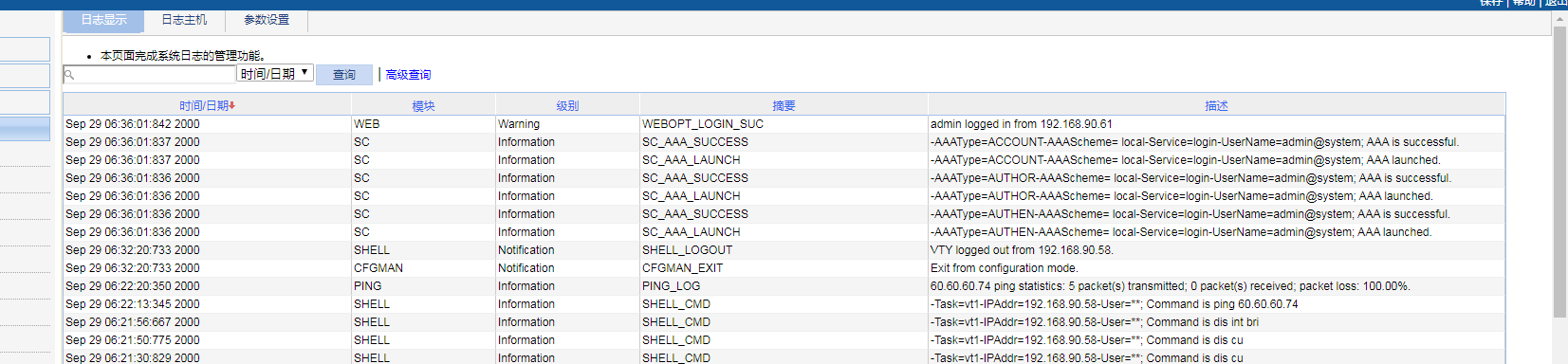 正常情况下,display logbuffer显示的内容同IMC中的一样,现场确认下设备是否关闭了部分日志功能,display info-center或者display cu确认下吧。