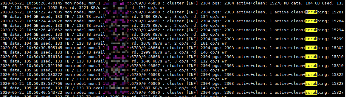 可以查看一下对应时间点的ceph.log里是否有scrub打印,注意ceph.log日志只有mon节点才有。