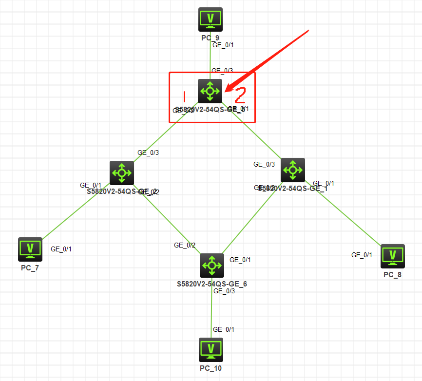 如图所示拓扑,把框内交换机关闭生成树协议,并在1、2口开启端口隔离,
