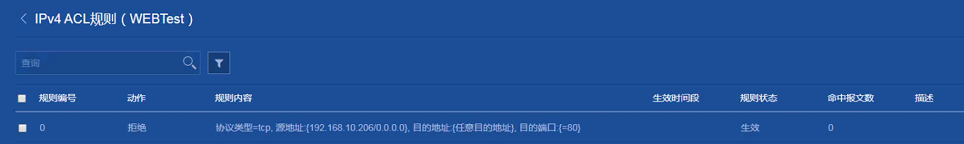 创建了一条ipv4 ACL设置为某ip不能访问指定的目的端口 成功