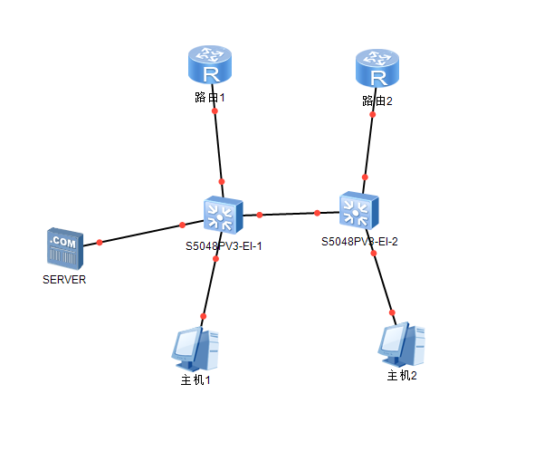 可以把2个主机网段不一样,各自网关指向各自的网关交换机,两台交换机正常写静态默认路由到上层路由器,两台交换机互联使用新网段,交换机2(右边)写指向访问服务器的路由到交换机1(左边),也就是后面正常写路由,可以实现
