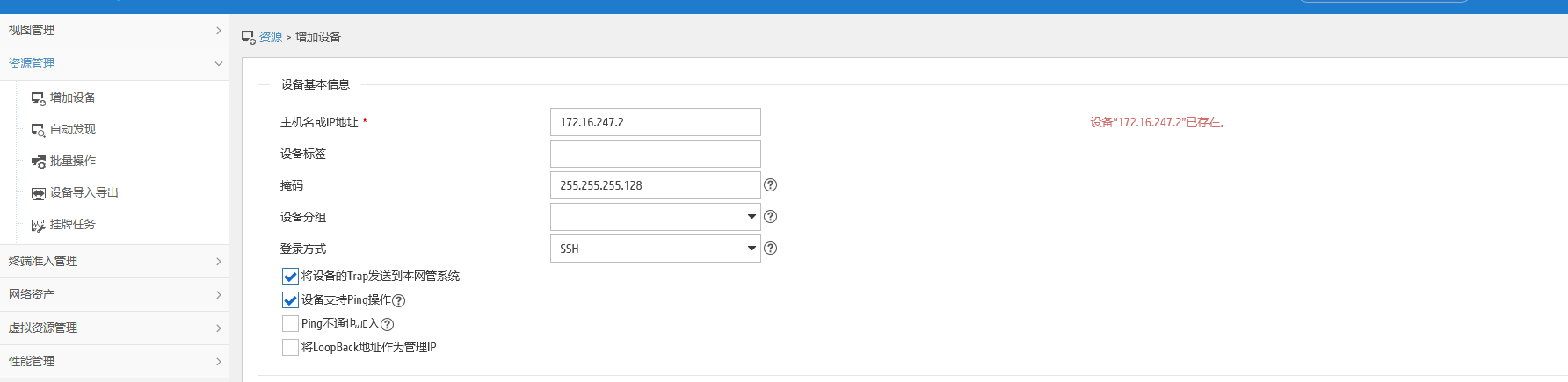 IMC在添加交换机时提示设备已经存在,通过什么办法能找到这台设备或者删除这台设备。