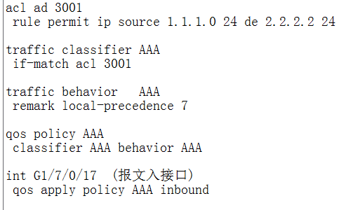 1.当出接口拥塞的时候,优先转发1.1.1.0 访问2.2.2.0 的这条流。
